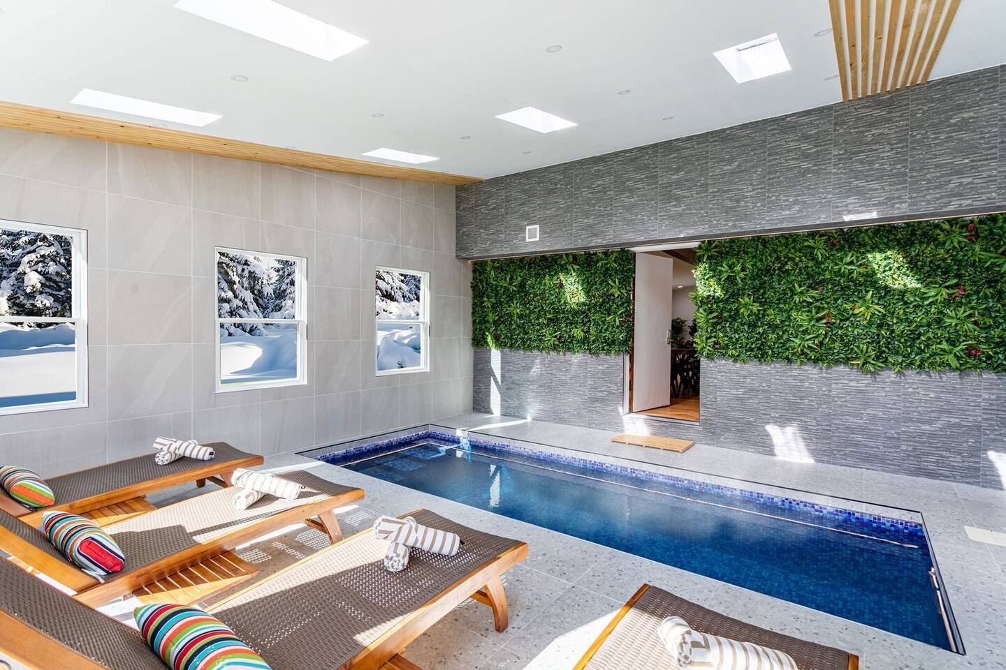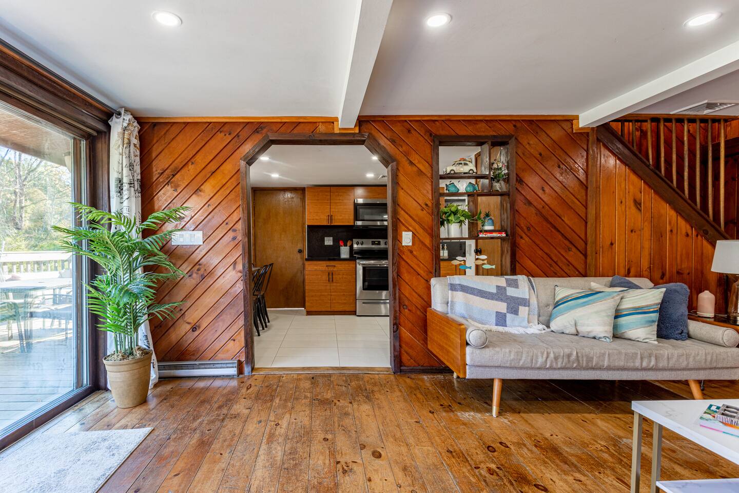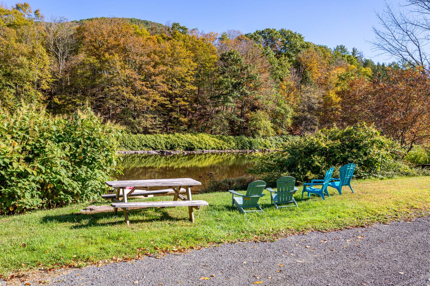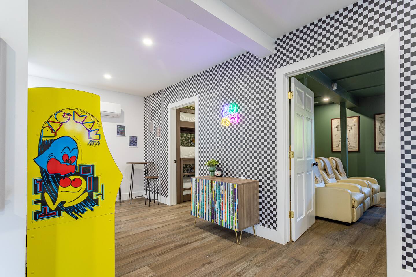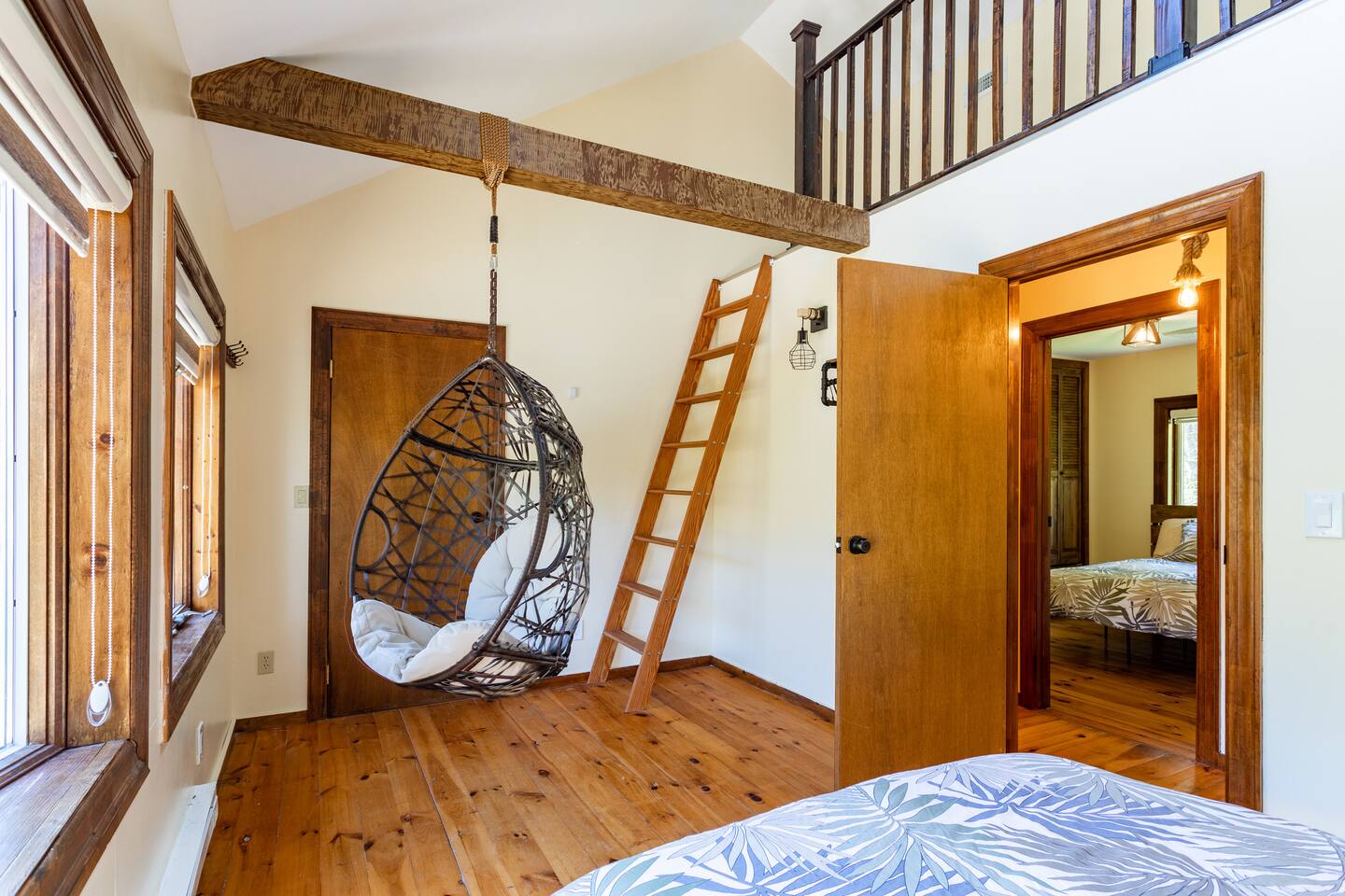 This completely private house is perfect for nature lovers. You’ll feel the serenity as you drive down the private gravel road toward the property. Enjoy the beautiful river across the driveway and catch a glimpse of the local wildlife. Snuggle up on the couch facing the fireplace in the winter as you watch the snow falling quietly around you through the wall of windows. In the summertime, stretch out and watch the stars break through the sky on the expanded deck. Enjoy the telescope, already set up on a tripod, for an authentic stargazing experience. Unwind in the evening with a cinematic experience in the home's private theater. Snuggle up in the plush, massage-enabled electric recliners and indulge in freshly popped popcorn, courtesy of the theater's convenient popcorn maker. This renovated home features 8 bedrooms with stunning river or forest views. 3 of the bedrooms have cozy attic nooks accessed by a ladder, with benches, books, and skylights and pitched roofs to add to the charm, making them perfect for getting lost in a good book or letting your imagination run wild! This house boasts a rustic wooded entry and a fully stocked kitchen with new modern appliances. The outdoor area retains its rustic look, while indoors has beautiful modern furniture, a Gel Fuel-burning and electric fireplace, cathedral ceilings, large windows, recessed lighting, and a propane grill on the deck. The property has broad grassy yards, perfect for frisbee games in the summer, or snowball fights in the winter. Extend your day into a magical night amidst the serene surroundings. Unwind in the beautifully landscaped sitting area, complete with a cozy fire pit and ambient lighting. Roast marshmallows for s'mores, share stories, and create lasting memories under the stars. Nearby, relax and socialize in the spacious 8-person hot tub, perfectly positioned to soak in the tranquility of the surroundings From the spacious floor plan, to the large private decks and yards, to the beautiful river and forest views, this is the perfect home for a relaxing getaway. The property features: - 7 bedrooms with 1 full bed each. - 1 bedroom with a total of 6 twin (bunk) beds. - 3 full bathrooms. - Game room for entertainment. - Movie theater. - Expansive deck with fire pit and grill. - Indoor heated pool open year-round. - Heated hot tub in a beautiful landscape setting. - Trout-filled river right in front of the property. - And many more amenities... Additional air mattresses can also be provided upon request.
