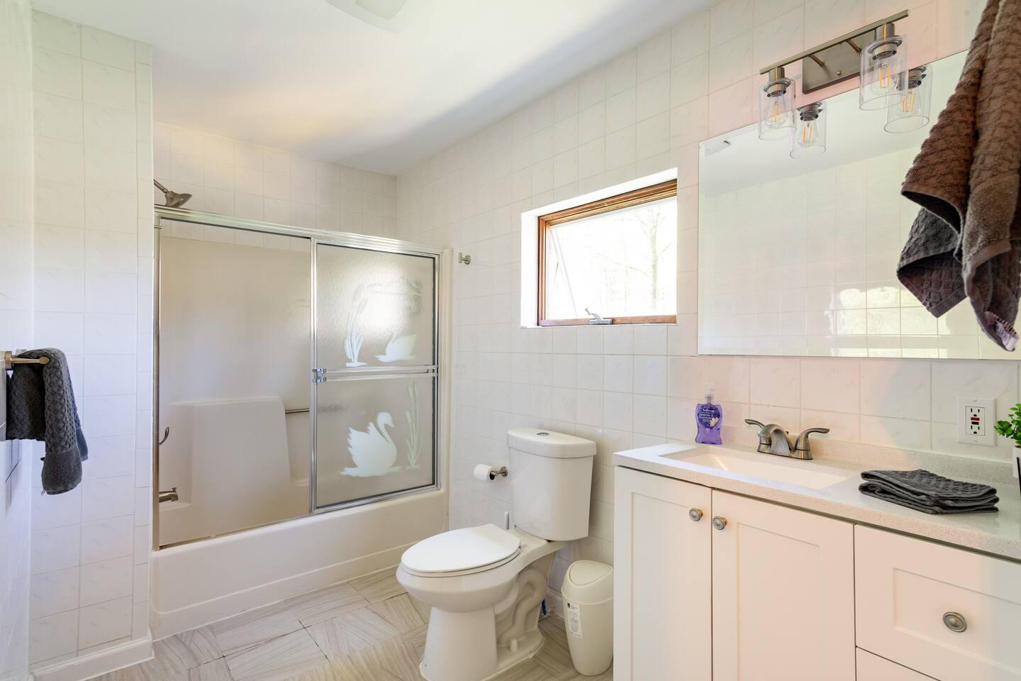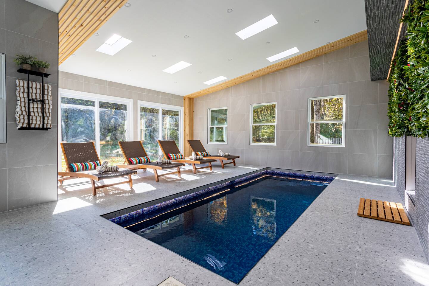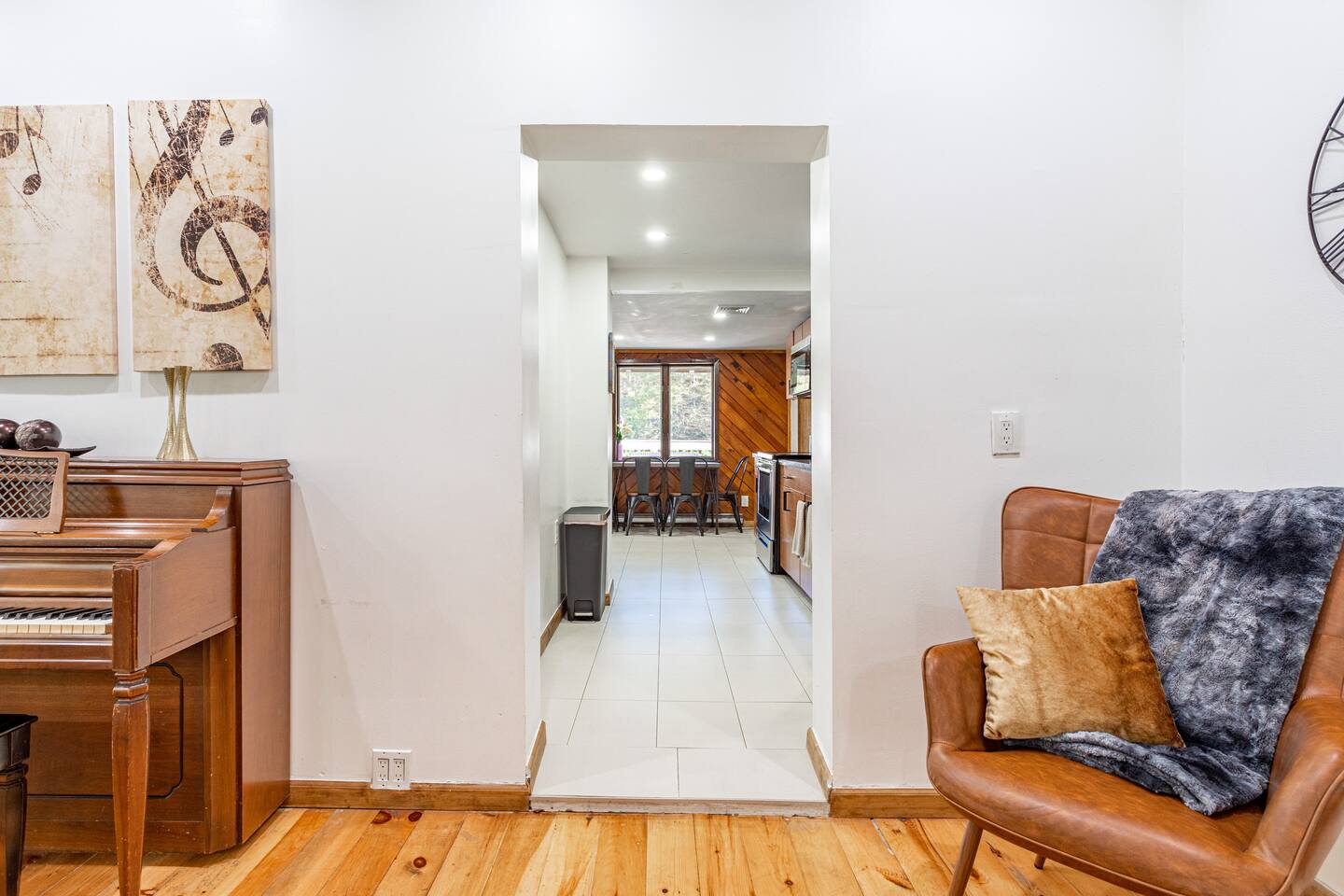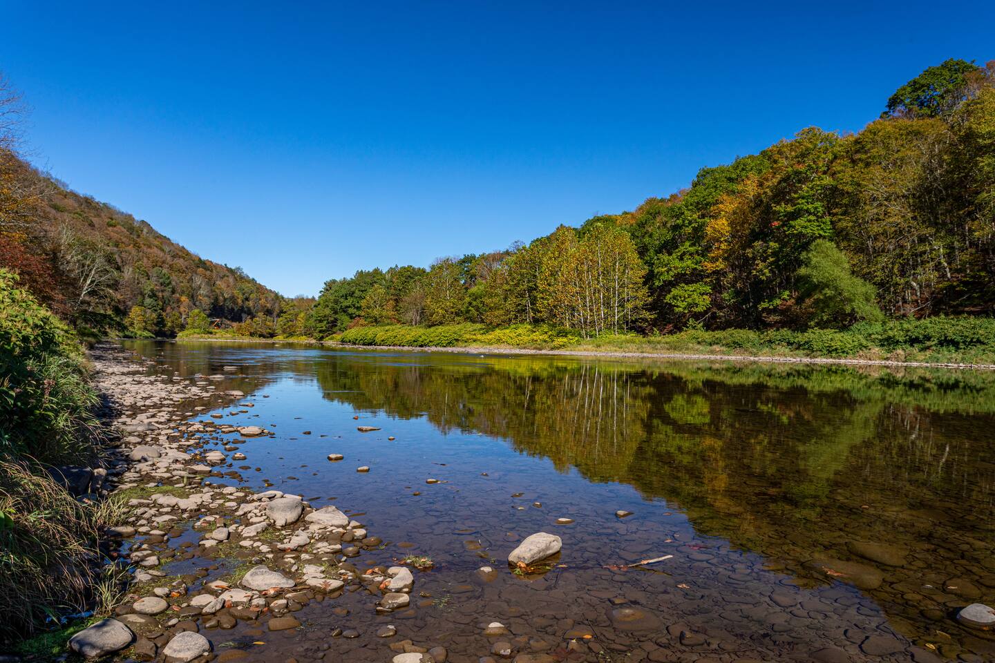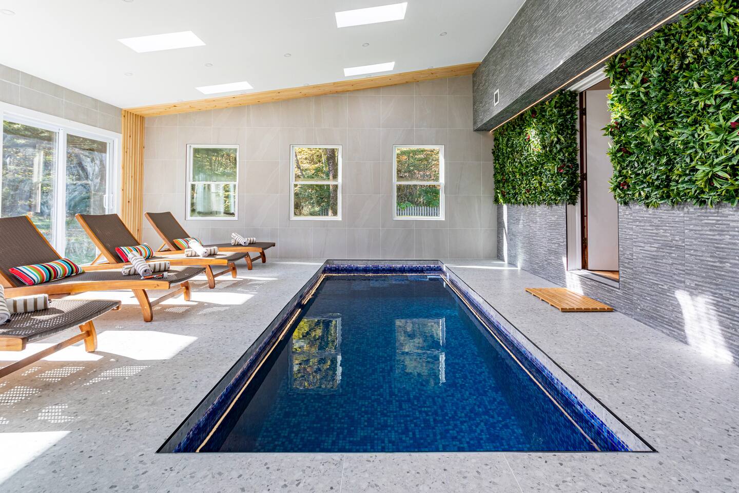 This completely private house is perfect for nature lovers. You’ll feel the serenity as you drive down the private gravel road toward the property. Enjoy the beautiful river across the driveway and catch a glimpse of the local wildlife. Snuggle up on the couch facing the fireplace in the winter as you watch the snow falling quietly around you through the wall of windows. In the summertime, stretch out and watch the stars break through the sky on the expanded deck. Enjoy the telescope, already set up on a tripod, for an authentic stargazing experience. Unwind in the evening with a cinematic experience in the home's private theater. Snuggle up in the plush, massage-enabled electric recliners and indulge in freshly popped popcorn, courtesy of the theater's convenient popcorn maker. This renovated home features 8 bedrooms with stunning river or forest views. 3 of the bedrooms have cozy attic nooks accessed by a ladder, with benches, books, and skylights and pitched roofs to add to the charm, making them perfect for getting lost in a good book or letting your imagination run wild! This house boasts a rustic wooded entry and a fully stocked kitchen with new modern appliances. The outdoor area retains its rustic look, while indoors has beautiful modern furniture, a Gel Fuel-burning and electric fireplace, cathedral ceilings, large windows, recessed lighting, and a propane grill on the deck. The property has broad grassy yards, perfect for frisbee games in the summer, or snowball fights in the winter. Extend your day into a magical night amidst the serene surroundings. Unwind in the beautifully landscaped sitting area, complete with a cozy fire pit and ambient lighting. Roast marshmallows for s'mores, share stories, and create lasting memories under the stars. Nearby, relax and socialize in the spacious 8-person hot tub, perfectly positioned to soak in the tranquility of the surroundings From the spacious floor plan, to the large private decks and yards, to the beautiful river and forest views, this is the perfect home for a relaxing getaway. The property features: - 7 bedrooms with 1 full bed each. - 1 bedroom with a total of 6 twin (bunk) beds. - 3 full bathrooms. - Game room for entertainment. - Movie theater. - Expansive deck with fire pit and grill. - Indoor heated pool open year-round. - Heated hot tub in a beautiful landscape setting. - Trout-filled river right in front of the property. - And many more amenities... Additional air mattresses can also be provided upon request.