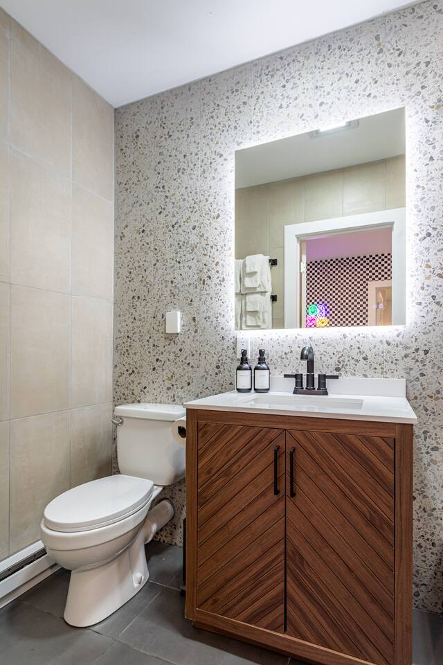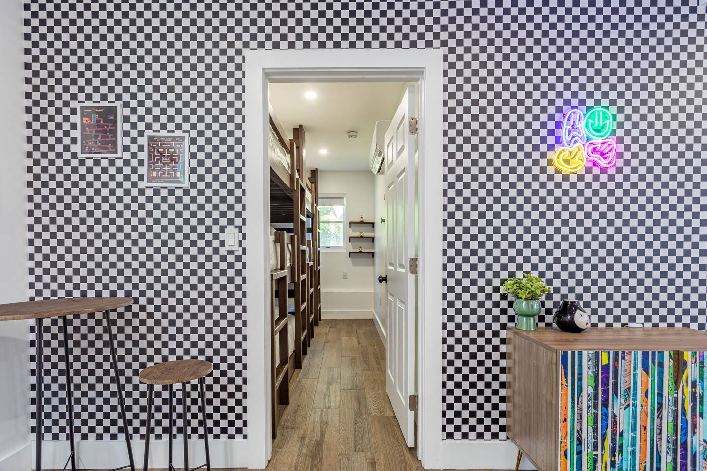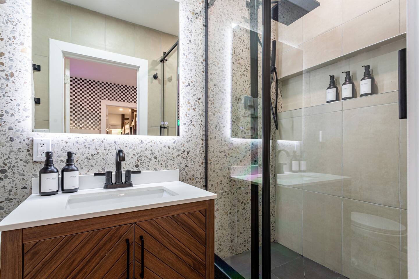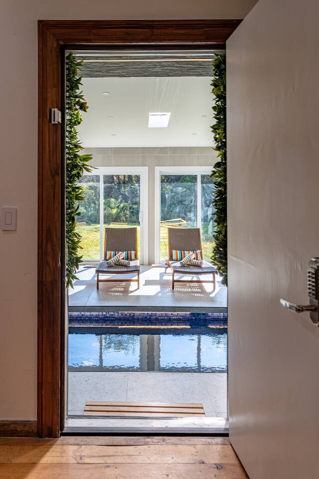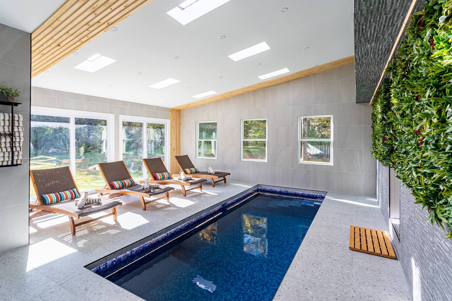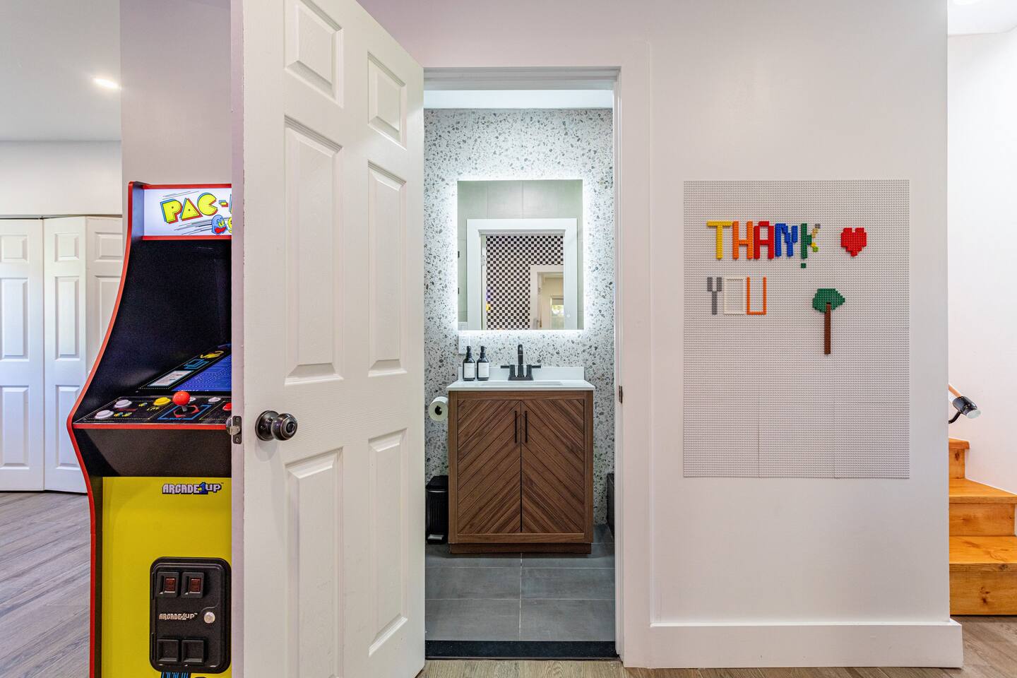 This completely private house is perfect for nature lovers. You’ll feel the serenity as you drive down the private gravel road toward the property. Enjoy the beautiful river across the driveway and catch a glimpse of the local wildlife. Snuggle up on the couch facing the fireplace in the winter as you watch the snow falling quietly around you through the wall of windows. In the summertime, stretch out and watch the stars break through the sky on the expanded deck. Enjoy the telescope, already set up on a tripod, for an authentic stargazing experience. Unwind in the evening with a cinematic experience in the home's private theater. Snuggle up in the plush, massage-enabled electric recliners and indulge in freshly popped popcorn, courtesy of the theater's convenient popcorn maker. This renovated home features 8 bedrooms with stunning river or forest views. 3 of the bedrooms have cozy attic nooks accessed by a ladder, with benches, books, and skylights and pitched roofs to add to the charm, making them perfect for getting lost in a good book or letting your imagination run wild! This house boasts a rustic wooded entry and a fully stocked kitchen with new modern appliances. The outdoor area retains its rustic look, while indoors has beautiful modern furniture, a Gel Fuel-burning and electric fireplace, cathedral ceilings, large windows, recessed lighting, and a propane grill on the deck. The property has broad grassy yards, perfect for frisbee games in the summer, or snowball fights in the winter. Extend your day into a magical night amidst the serene surroundings. Unwind in the beautifully landscaped sitting area, complete with a cozy fire pit and ambient lighting. Roast marshmallows for s'mores, share stories, and create lasting memories under the stars. Nearby, relax and socialize in the spacious 8-person hot tub, perfectly positioned to soak in the tranquility of the surroundings From the spacious floor plan, to the large private decks and yards, to the beautiful river and forest views, this is the perfect home for a relaxing getaway. The property features: - 7 bedrooms with 1 full bed each. - 1 bedroom with a total of 6 twin (bunk) beds. - 3 full bathrooms. - Game room for entertainment. - Movie theater. - Expansive deck with fire pit and grill. - Indoor heated pool open year-round. - Heated hot tub in a beautiful landscape setting. - Trout-filled river right in front of the property. - And many more amenities... Additional air mattresses can also be provided upon request.