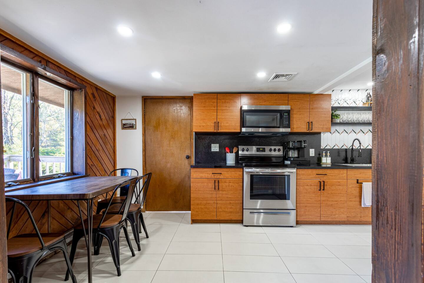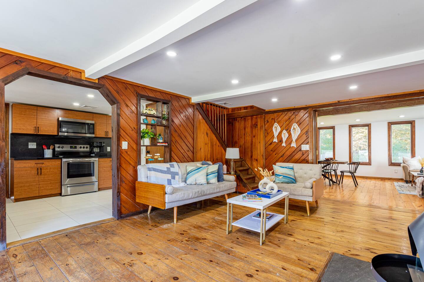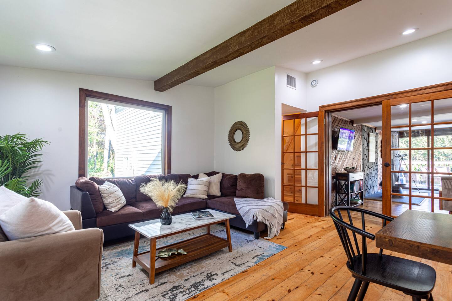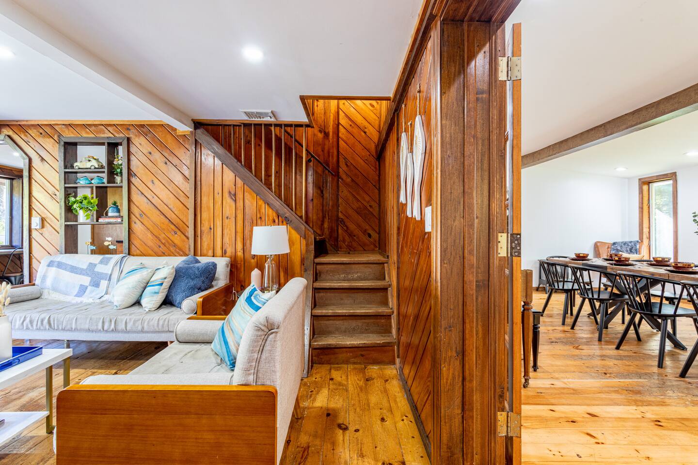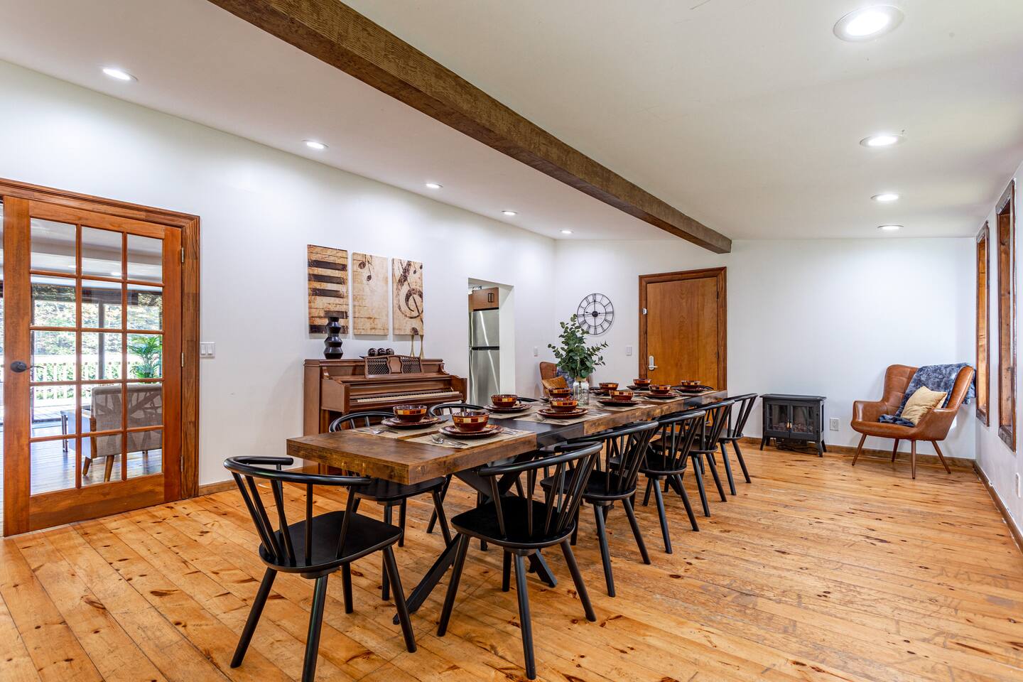 This one-of-a kind property has all the makings of a dream vacation for bigger groups. Secluded contemporary river front home in the woods on 6 stunning acres with river access! If you're looking for privacy and beautiful views, this peaceful and inviting home is for you! Enjoy a vacation that perfectly balances luxurious modern amenities with all the beauty and intrigue that nature has to offer.