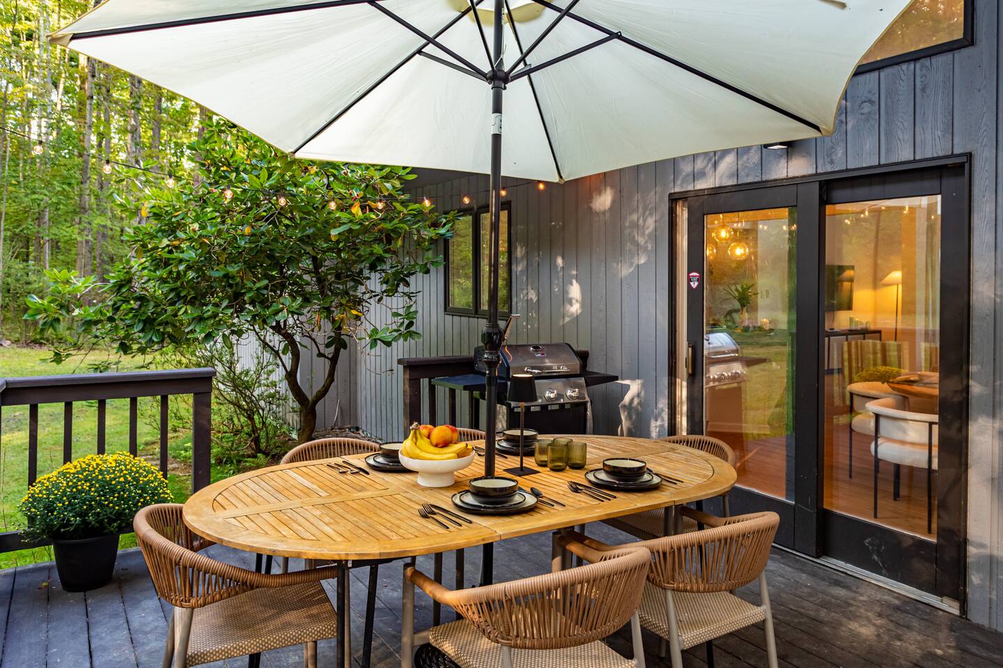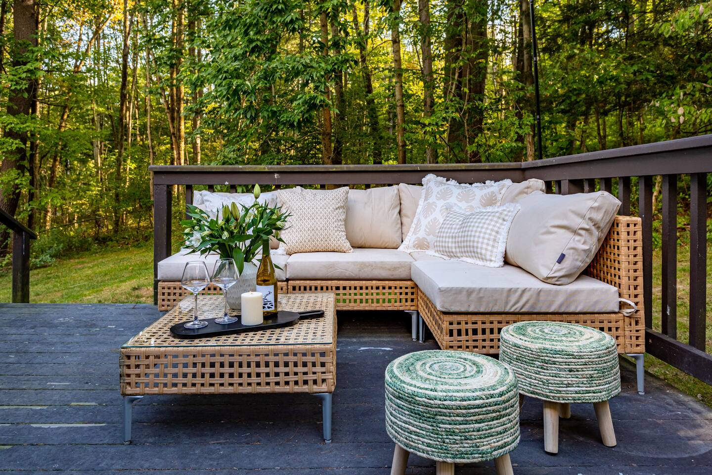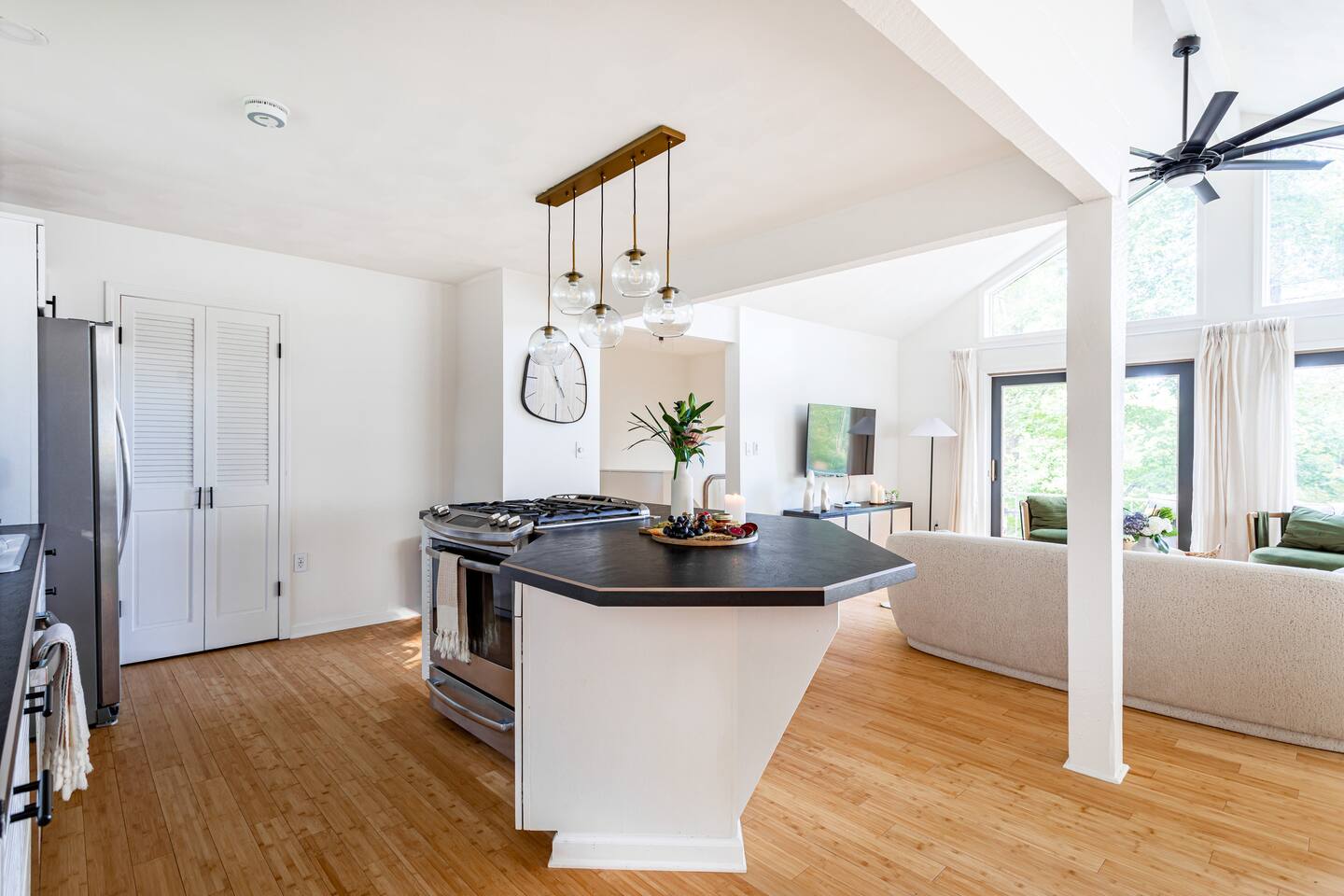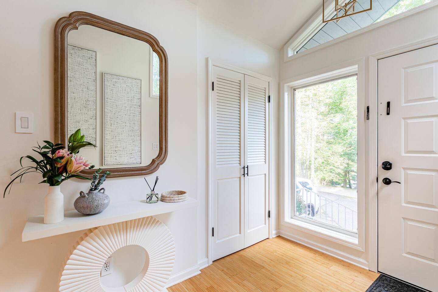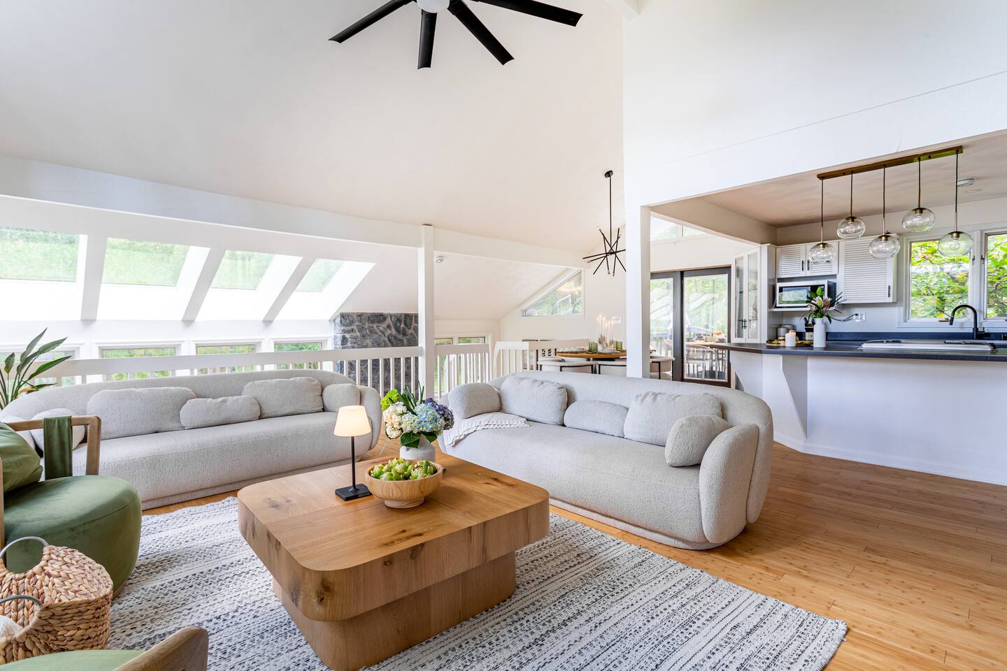 Ideal for couples and small families alike, this peaceful home offers a relaxing vacation experience. Unwind in the comfortable living spaces, surrounded by nature's splendor. The property features expansive decks with gorgeous views, perfect for nature lovers. The circular driveway and serene surroundings create a sense of calm, while the expansive floor-to-ceiling windows offer breathtaking views of the surrounding landscape. This resort-style home boasts: - Beautiful, high-end new furniture throughout - A fully stocked kitchen with updated appliances - Cathedral ceilings and large windows - Beautiful, solid bamboo hardwood flooring - 3 newly remodeled bathrooms - New high-quality modern lighting throughout - Recessed lighting and propane grill on the deck - Patio featuring a propane fire pit for cozy nighttime - Broad grassy yards perfect for outdoor activities - 3 bedrooms, including a master suite with a king bed, an ensuite bathroom, and a jacuzzi hot tub - 2 additional bedrooms with queen beds - Fine cotton linens and luxurious amenities throughout Experience the Ultimate in Relaxation! Enjoy breathtaking sunrise views from the East-facing front balcony, sunset views from the back deck, and relax in the spa-quality jetted tub. Take a dip in the indoor heated pool that is open year-round! Book your stay today and experience the ultimate in relaxation and tranquility.