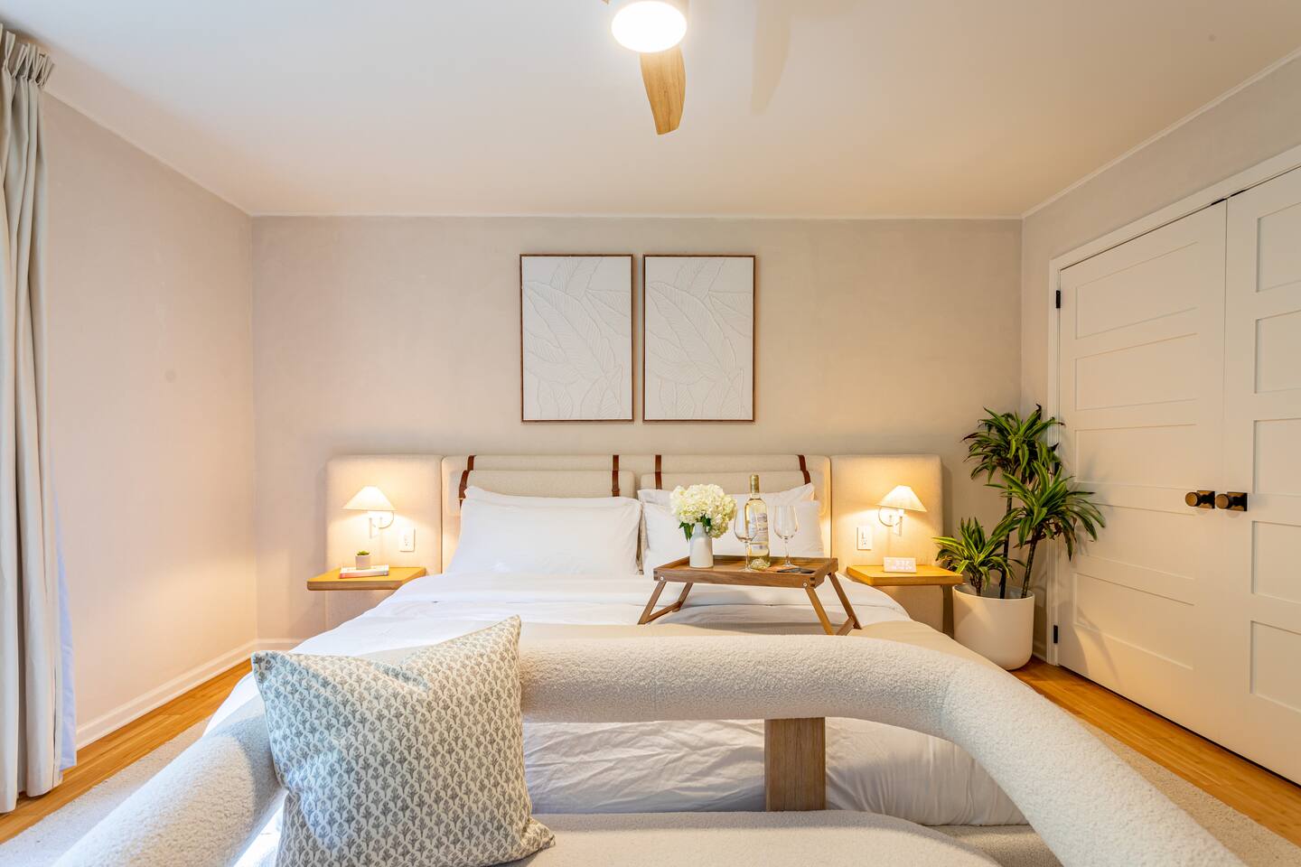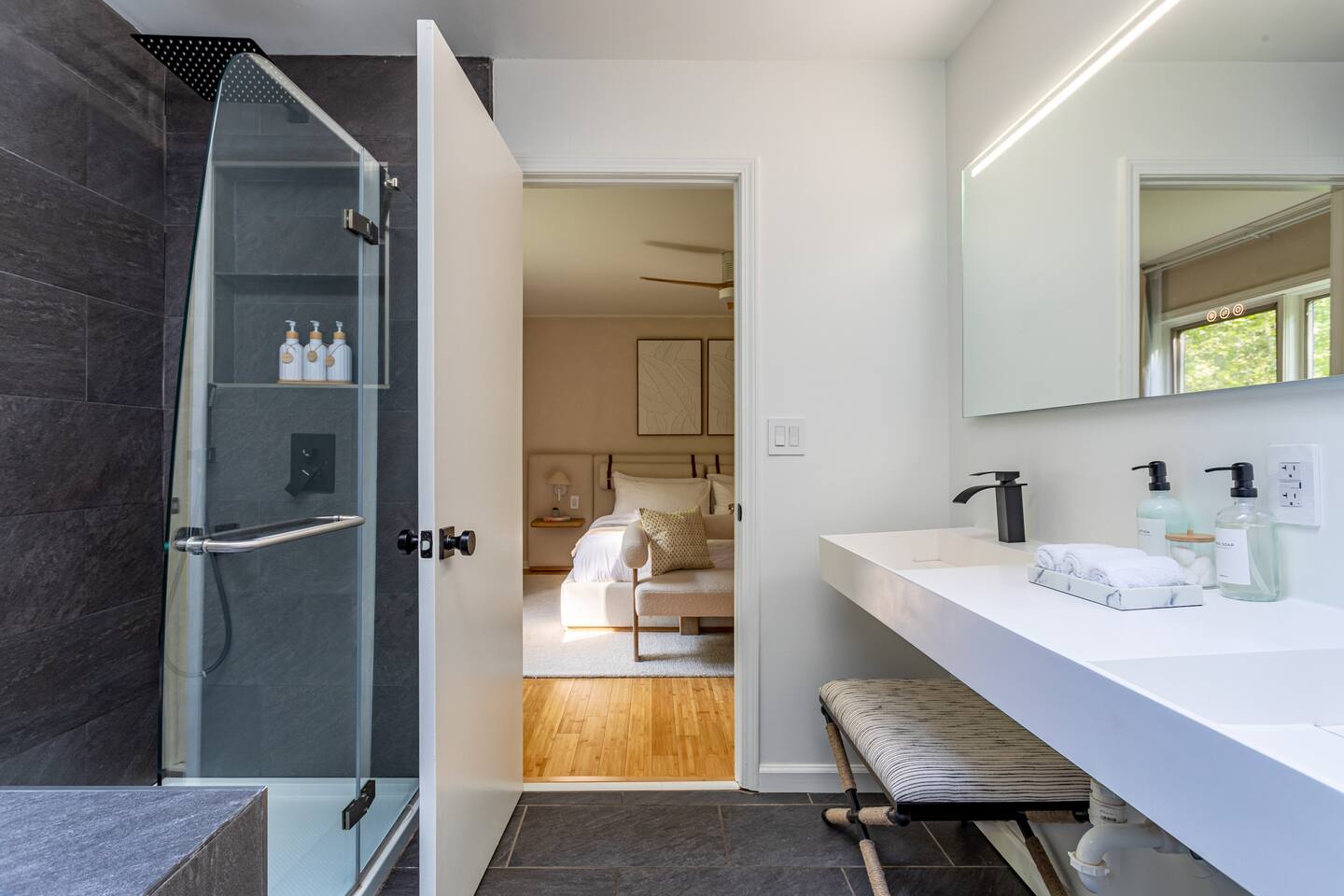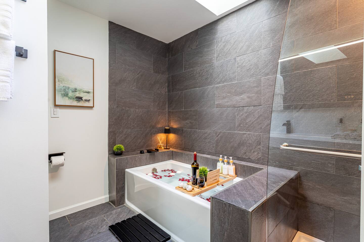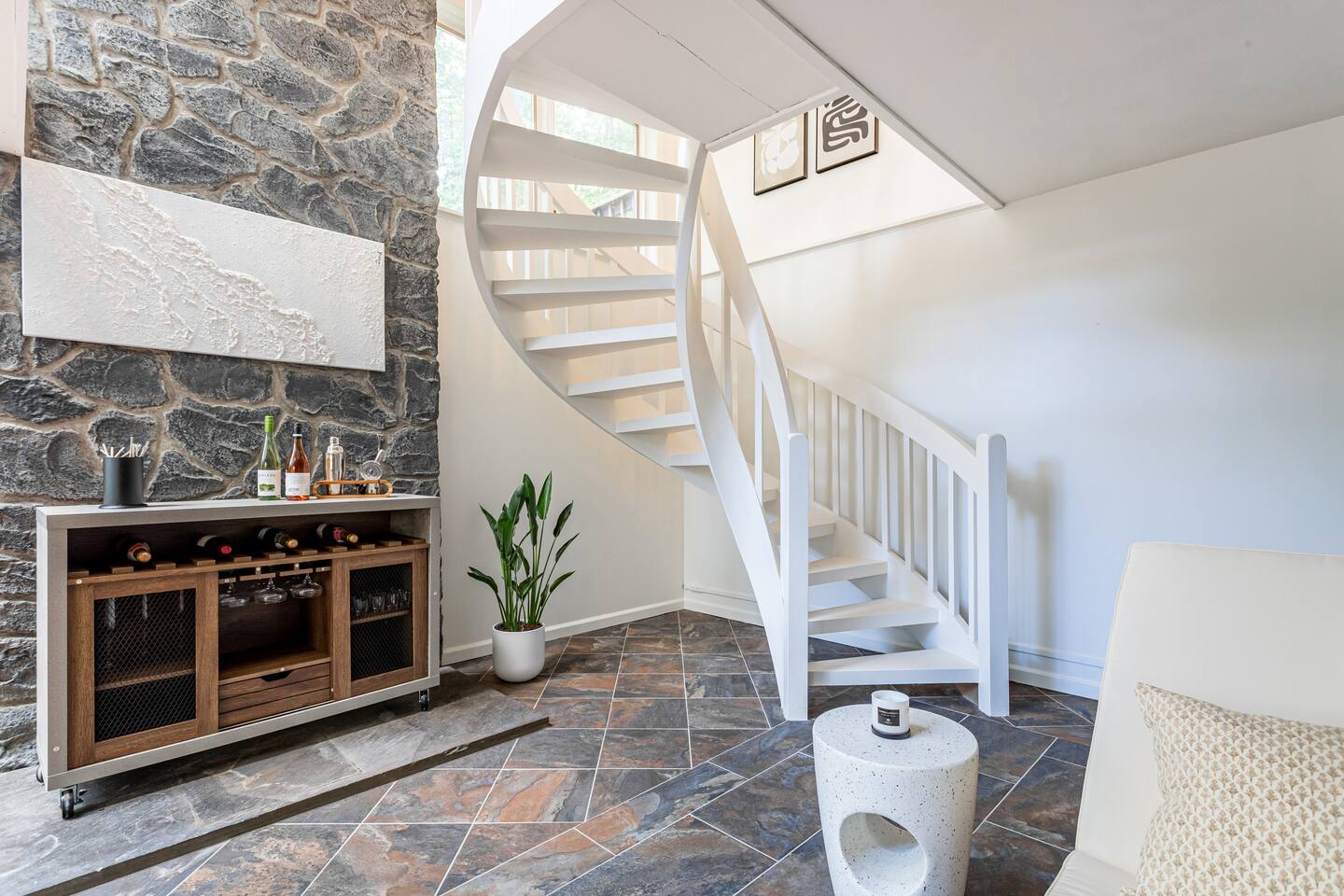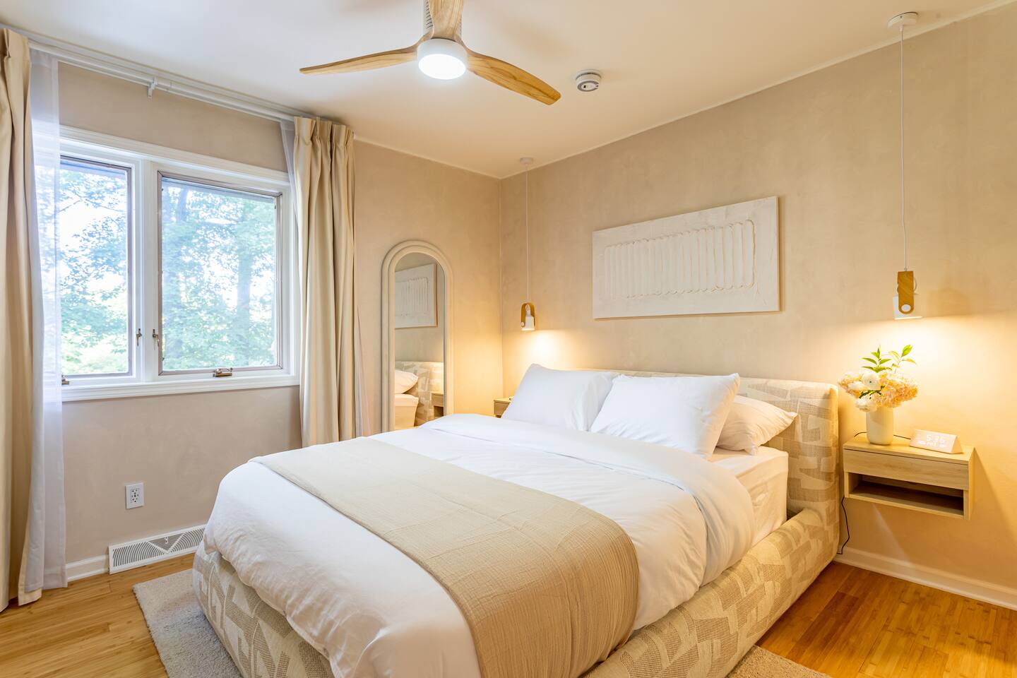 Ideal for couples and small families alike, this peaceful home offers a relaxing vacation experience. Unwind in the comfortable living spaces, surrounded by nature's splendor. The property features expansive decks with gorgeous views, perfect for nature lovers. The circular driveway and serene surroundings create a sense of calm, while the expansive floor-to-ceiling windows offer breathtaking views of the surrounding landscape. This resort-style home boasts: - Beautiful, high-end new furniture throughout - A fully stocked kitchen with updated appliances - Cathedral ceilings and large windows - Beautiful, solid bamboo hardwood flooring - 3 newly remodeled bathrooms - New high-quality modern lighting throughout - Recessed lighting and propane grill on the deck - Patio featuring a propane fire pit for cozy nighttime - Broad grassy yards perfect for outdoor activities - 3 bedrooms, including a master suite with a king bed, an ensuite bathroom, and a jacuzzi hot tub - 2 additional bedrooms with queen beds - Fine cotton linens and luxurious amenities throughout Experience the Ultimate in Relaxation! Enjoy breathtaking sunrise views from the East-facing front balcony, sunset views from the back deck, and relax in the spa-quality jetted tub. Take a dip in the indoor heated pool that is open year-round! Book your stay today and experience the ultimate in relaxation and tranquility.